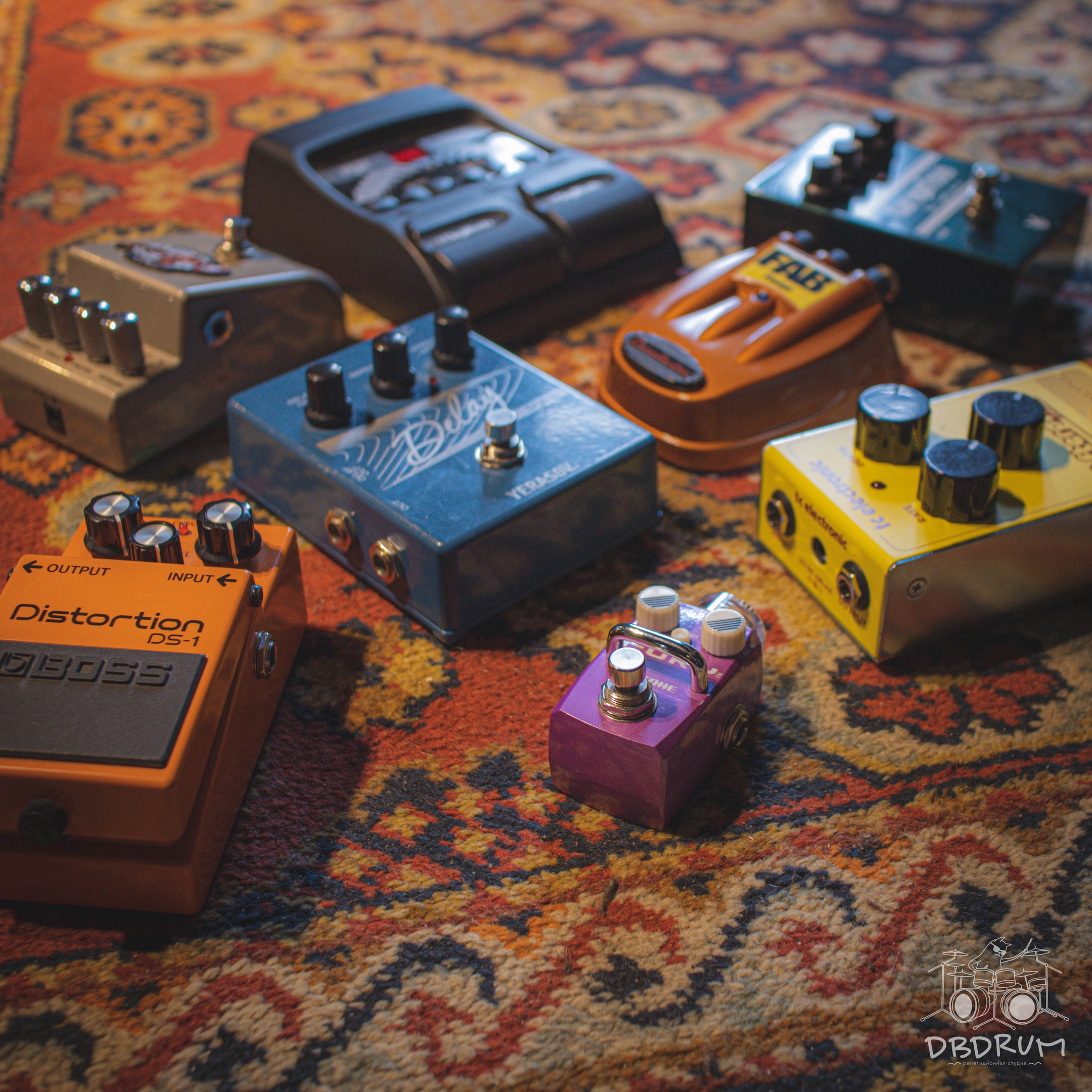 На репетицию можно взять гитарные педали эффектов. Имеются Overdrive, Distortion, Fuzz, Tremolo, Delay, Chorus, Compressor, процессор мультиэффектов.
